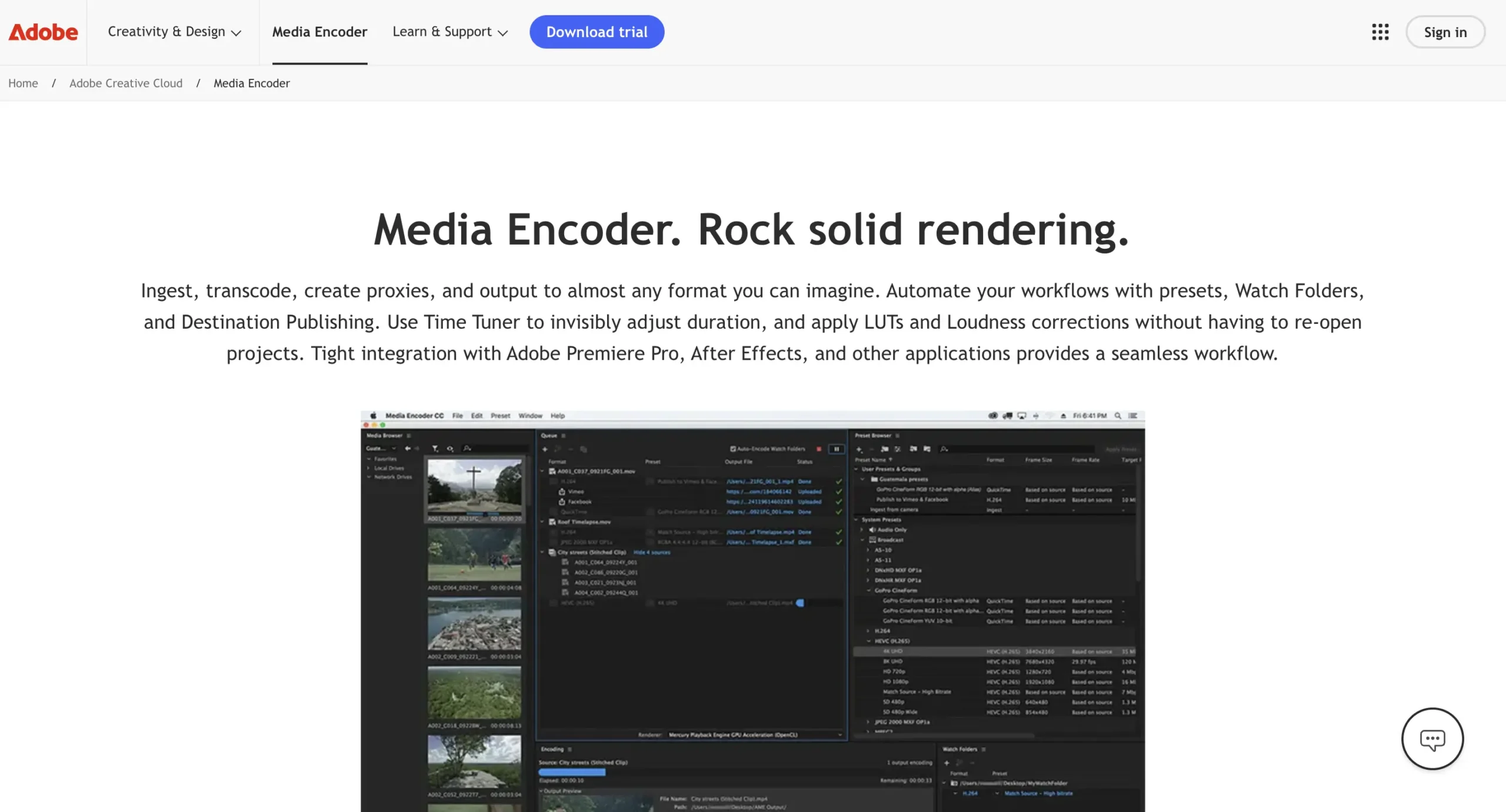 Adobe Media Encoder is widely used in professional video workflows. It integrates with Adobe Premiere Pro and After Effects, making it useful for editors exporting large projects.